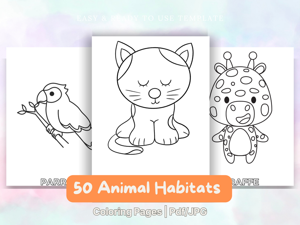 This digital download includes 50 pages of beautifully illustrated animal, providing endless fun for kids while helping them learn about the diverse environments animals call home.