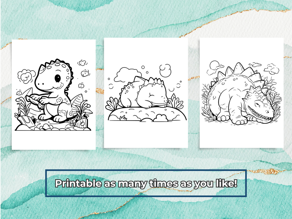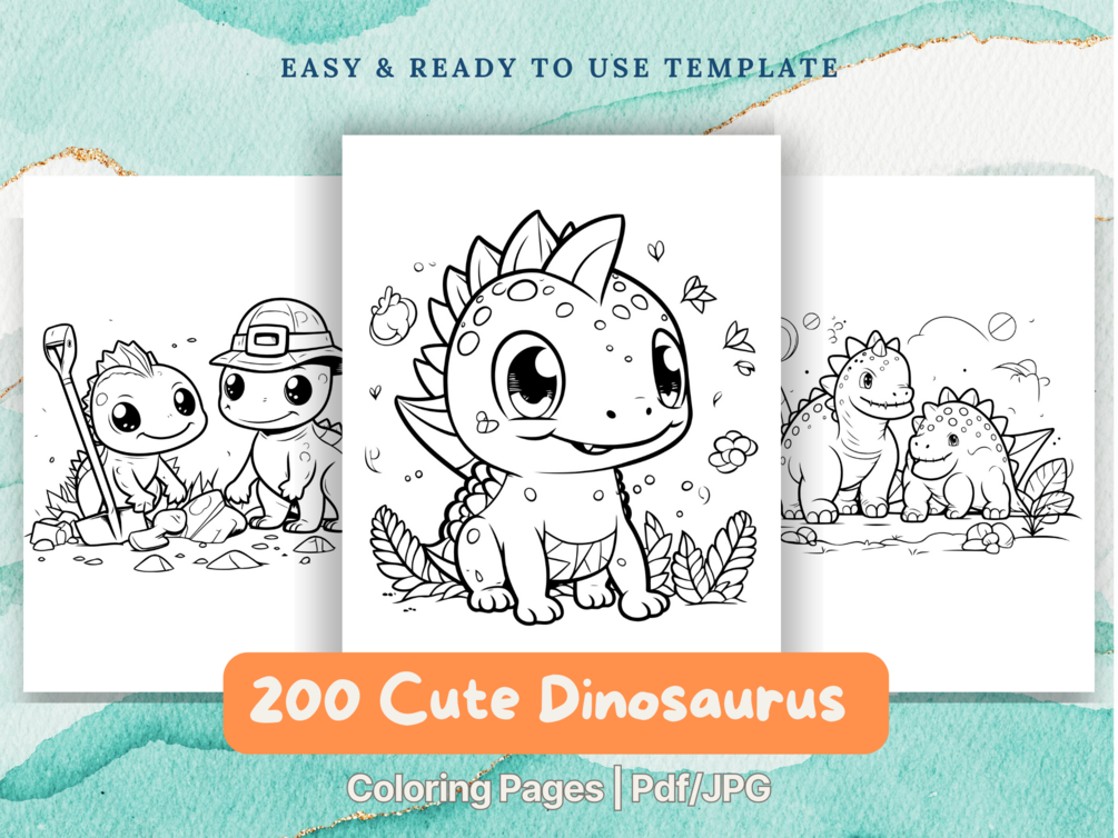 Bring the fun world of dinosaurs right into your hands with the 200 Cute Dinosaurs Coloring Pages collection!